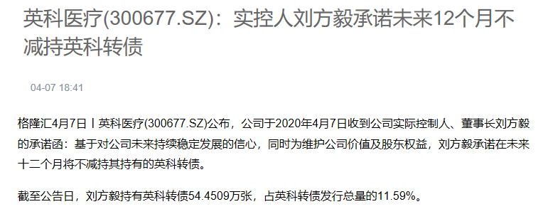 劉方毅發生短線交易的原因系誤操作,但劉方毅還是承諾「未來十二個月將不減持其持有的英科轉債」。