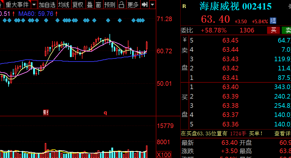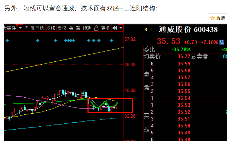 最後,今天通威和海康都漲得比較多,海康天天都說60以下可以加倉,通威周一提示過機會: