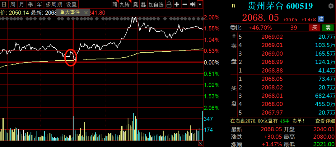 反映在盤面上,茅台1點後砸了一點,但是很快就拉起來了,怎麼理解呢?