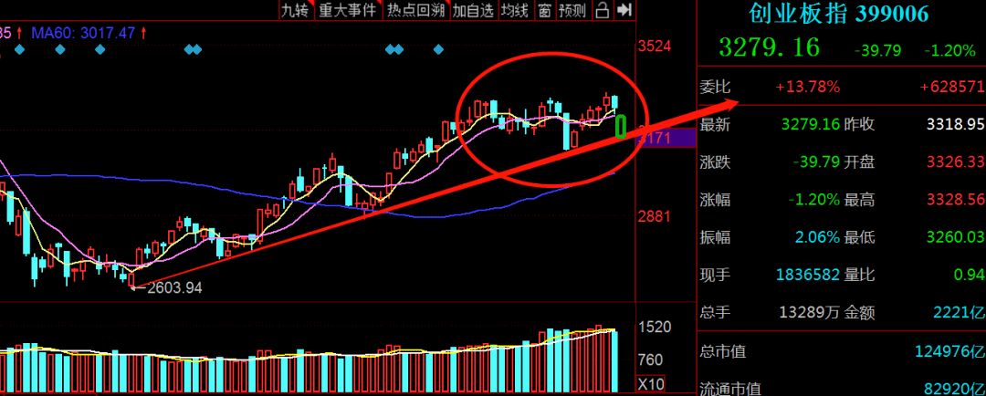 今天三大指數表現不一,滬指小幅收漲,創業板指一度跌近2%。