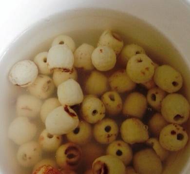 3,如果用新鮮的蓮子,可以把蓮子芯弄出來,因為它比較苦,蓮子芯可以用來泡茶,清熱下火很好。