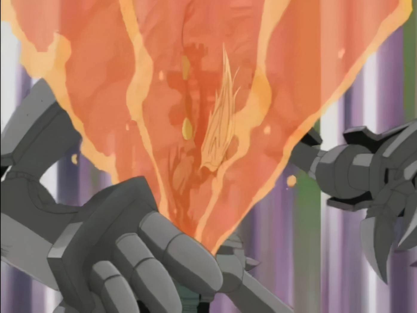 只不過,兜兜轉轉間,又回到了最初的起點:站在摩天樓上的火焰翼人,從天而降的一拳打翻了古代機械巨人。