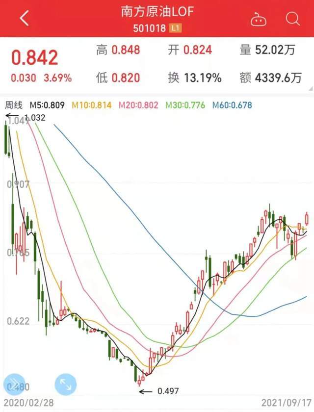 今天南方原油淨值已回到0.85元,只要當時沒底部割肉,堅持下來的,現在都賺錢了。