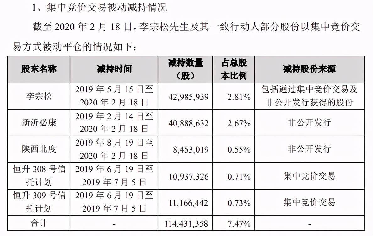 此外,自2019年以來,控股股東新沂必康所持股份便屢遭強制平倉導致被動減持。根據公告顯示,在2019年2月至2020年2月期間,實控人李宗松、控股股東新沂必康及其一致行動人已累計減持超1.6億股……