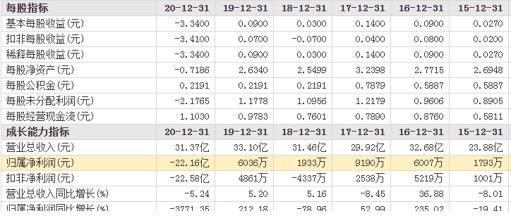 2019年,澄星股份實現營收33.10億元,歸母淨利潤為6036萬元;然而,2020年澄星股份業績卻「炸雷」了!2020年財報顯示,公司全年實現營收31.37億元,同比下降5.24%,歸母淨利潤則巨虧22.16億元!