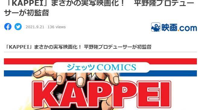 近日,相關媒體報導稱日本著名漫畫家若杉公德所創造的《末日救世主KAPPEI》將製作成真人電影。據官方消息透露,平野隆將擔任其導演,編劇則已確定為《輝夜大小姐》系列的徳永友一。
