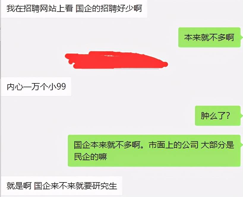 案例二:重慶寶媽,我的前同事。在民企被領導針對,績效考核很慘,馬上步入被辭職的地步。聽說國企工作,很輕松很舒服,就一門心思想進國企了。結果發現國企崗位很少,來問我怎麼辦。
