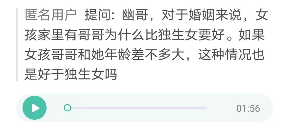 你自己是什麼情況,男女、婚否、家裡兄弟姐妹情況如何,我幽哥的每個回答會站在提問者的角度,設身處地讓你最大化你的利益,也叫揚長避短。你看這位,還來勁了,又來問,假裝自己是男孩,其實她是個家裡有哥哥的女生。