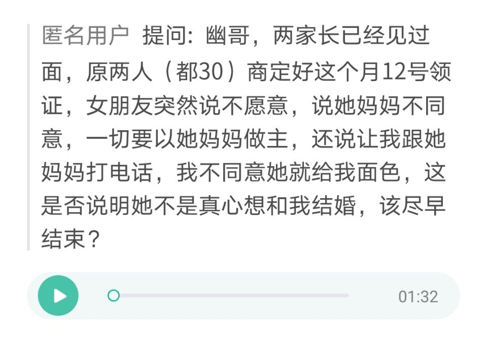 有男孩都30來歲了,卻根據要不要給未來丈母娘打一個電話,來倒逼自己做出接受還是放棄這個婚姻的抉擇。他這是沒將女孩當人,也沒將自己當人,被我一頓罵。