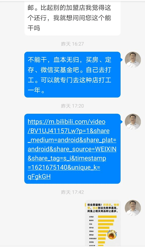 我不但給了建議,還發了一個視頻和圖片,來增加他放棄的可能性。