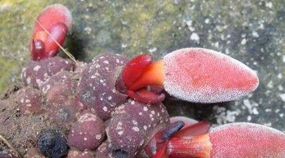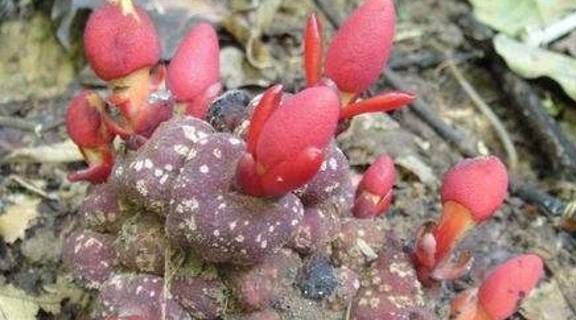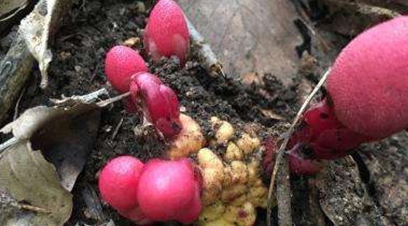 此物的名稱叫「蛇菰」,「蛇菰」常生長於蔭蔽的密林中,特別是在植物的根部下,比較容易見到,當然,目前這種野生植物的數量是很稀少的,可以說能遇見一次,就實屬運氣,所以大家要記住它的外貌,以方便今後辨認。此外,關於「蛇菰」的外貌其實也很好辨認,它的植株為大紅色,而外貌則與菌類相同,但是如果要論整體的話,筆者還是認為「蛇菰」要更為漂亮。