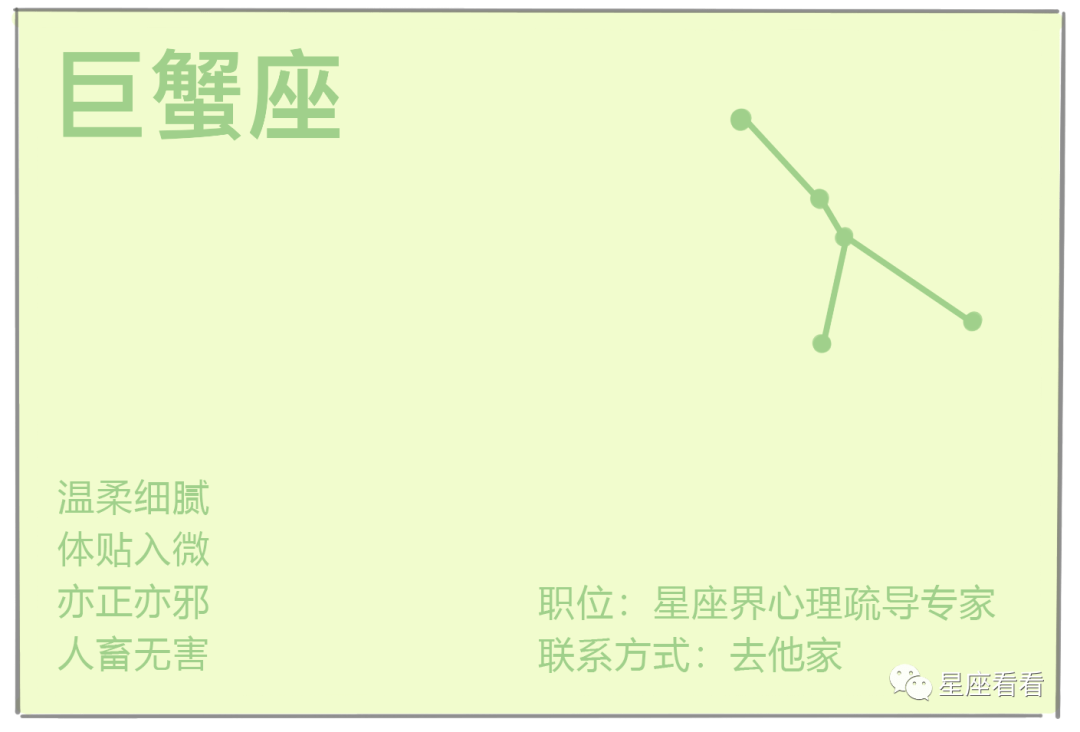 別的心理醫生都是用理論和知識去疏導你的內心,而巨蟹,他會用自己的真心和感情去治癒你。