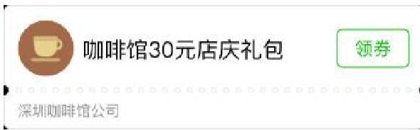 在線推廣微信卡券、點擊廣告支持一鍵領券我們經常會遇到一點卡券類的廣告,點擊就可以領取咖啡店的30元優惠券、點擊就可以領取某品牌服裝滿500減50的優惠券。這種不僅僅適用於某寶,某夕夕,公眾號推廣一樣適用。