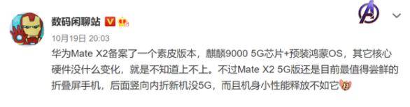 而近日,網上又曝光出了華為新款旗艦折疊屏的消息。根據相關博主表示,華為MateX2除了標准版以外,還有一款素皮版,整體配置變化不大,依舊是麒麟9000+鴻蒙2.0系統,售價依然會是萬元起步。最重要的是這款產品支持5G網絡,這一點才是最吸引「花粉」注意力的。