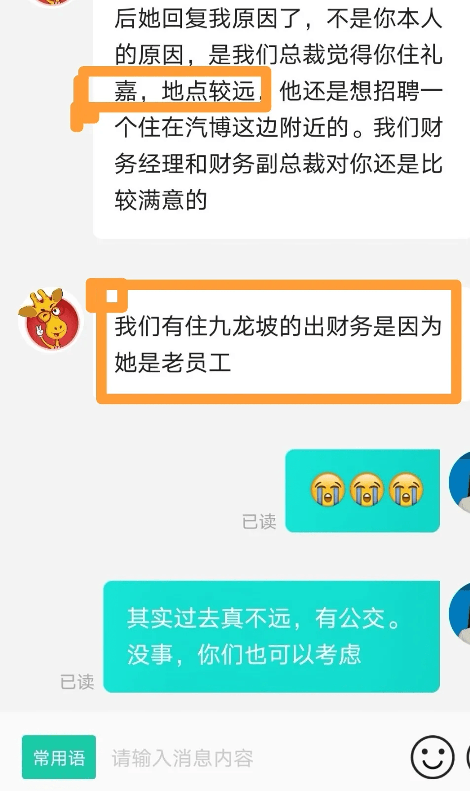 這種從人事篩選簡歷時,就刻意否決掉「住得遠的人」,說明該崗位和該公司確實工資太低了。大家想知道這些理由如何回復的,看下圖我框出來的句子。