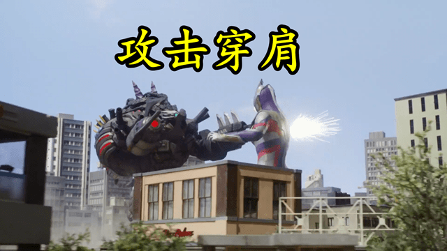 特利迦變身敏捷型的空中形態,也是效仿了風馬,依靠閃現打游擊,效果還不錯。隨後,特利迦也沖向了戴亞博里古,打算致敬風馬前輩,一頭干碎戴亞博里古的武器。可惜,空中型致敬失敗,反而被戴亞博里古一炮打落。