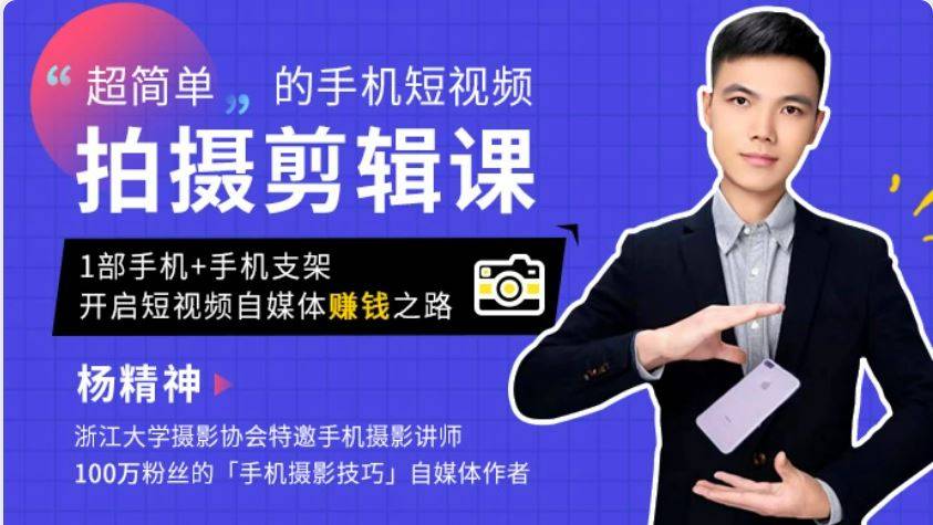 19堂生動的視頻課交給你最簡單易上手的拍攝剪輯工具和技巧,0基礎也能學會你只需要一部手機+一個支架,就能開啟短視頻自媒體賺錢之路!