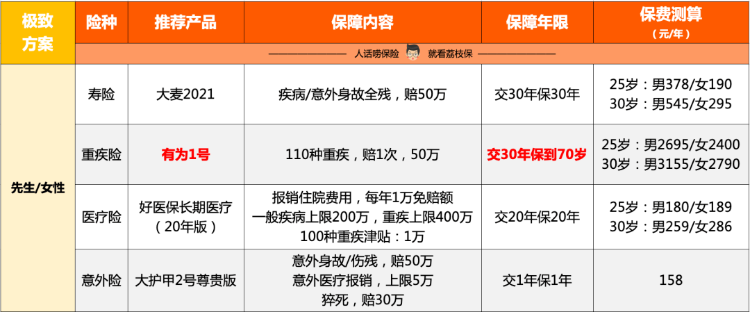 而對於預算相對寬松點,可以選擇保障終身的,再考慮加點錢配置有為1號~