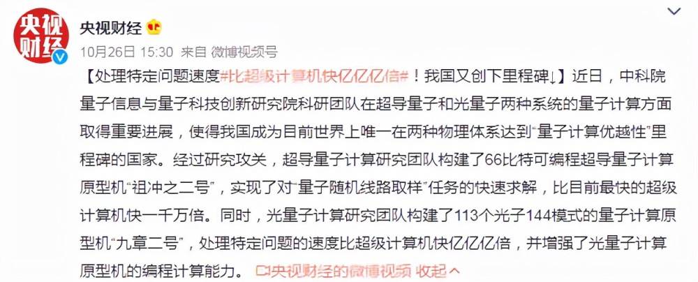 中科院量子信息與量子科技創新研究所完成了這兩項量子計算的優越性進展,為我國量子計算打下了更加深厚的基礎。根據資料顯示,其中超導量子計算團隊打造出了「祖沖之二號」,這台66比特可編程超導量子計算原型機比目前世界上最快的超級計算機快一千萬倍。