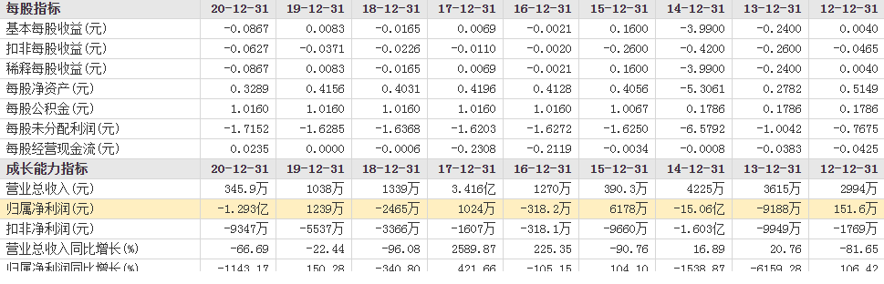 財報顯示,自2011年以來,上市公司扣非淨利潤已連續10年為負值;在2018年、2019年,公司營收為1000餘萬元(未調整),到2020年則低至345.9萬元!