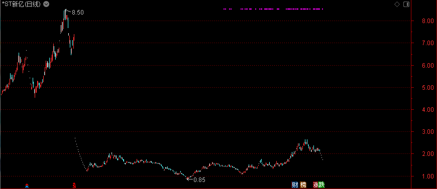 然而,2015年由於財務和經營狀況嚴重惡化,資不抵債,*ST新億遭債權人申請破產重整,隨即在2015年12月7日宣布停牌;沒想到的是,這一停即是四年多時間,因公司遲遲未能未恢復上市,優質資產的注入或者引入新的投資人也無法實施,導致上市公司業績更是難看之極……