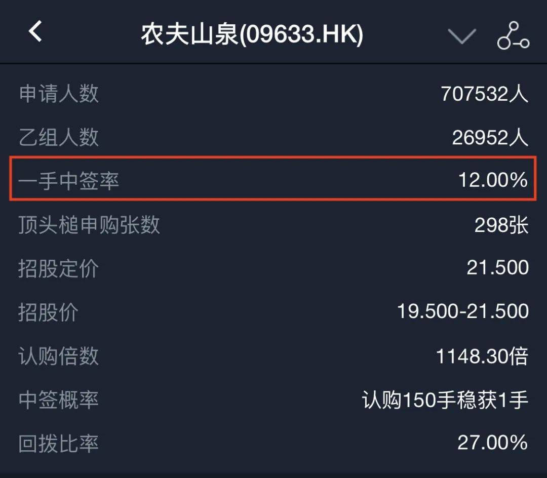 按照目前給散戶分配的手數和市場上預計的參與人數來看,一手中簽率也就在1%左右。