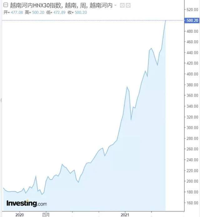 河內指數漲幅更加驚人,去年年初至今漲幅高達180%,而且去年疫情期間也沒有出現大幅回調,可以說是一路高歌猛進!
