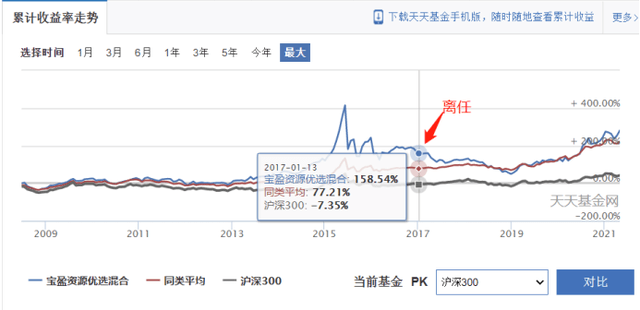 以當年的明星基金——寶盈資源優選為例,自從彭敢離任後,基金業績就一落千丈。