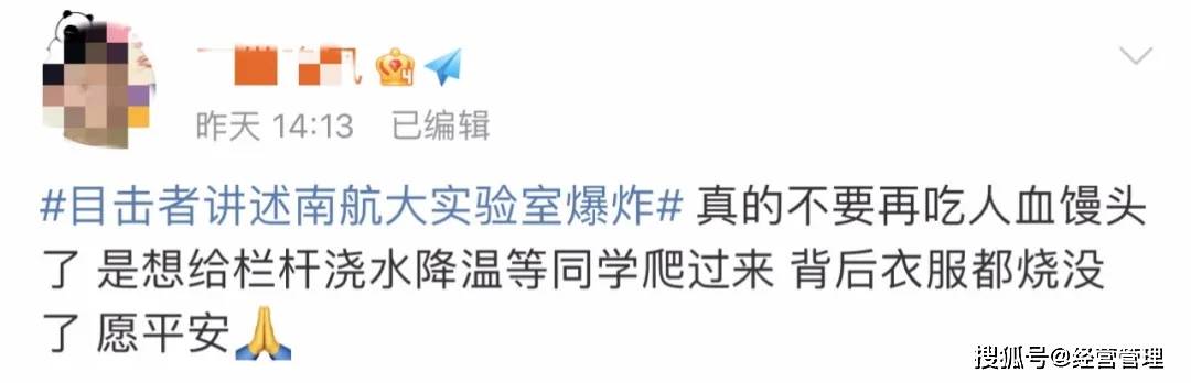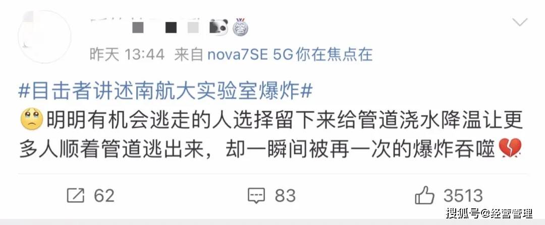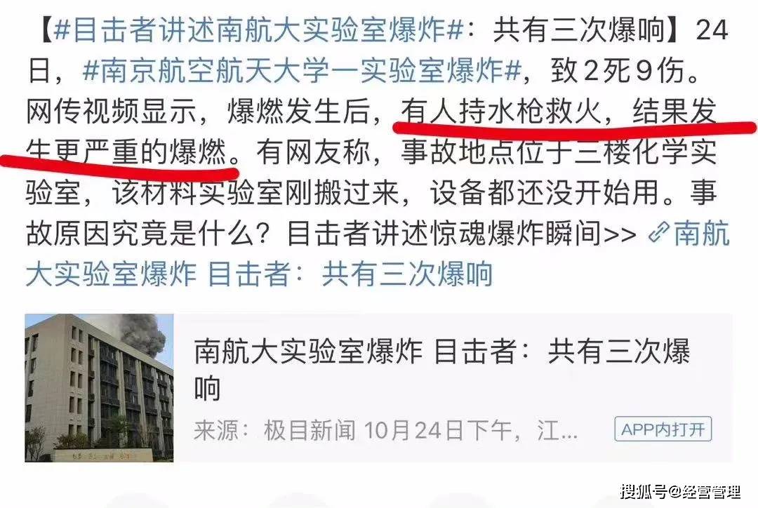 沈陽燃爆事故發生沒幾天,10月24日下午,南京航空航天大學的一間實驗室,又突然發生了爆炸。