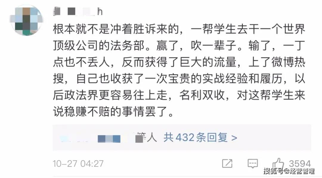 不管他們的目的到底是什麼,也不管能不能勝訴,起碼他們敢對不公說「不」,敢於對現狀提出質疑。這是年輕人最好的特質,也是大學生該有的特質。