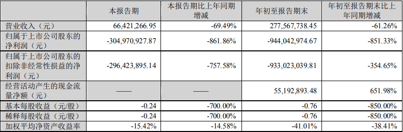 10月28日晚間,藍盾股份公布了三季報,公司前三季度實現營收2.78億元,同比下降61.26%,歸母淨利潤則虧損9.44億元,已經超越2019年全年虧損額。