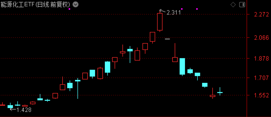 值得注意的是,能源化工自10月19日觸及2.311元歷史新高後,持續回調了32.15%,連續兩周出現下跌!