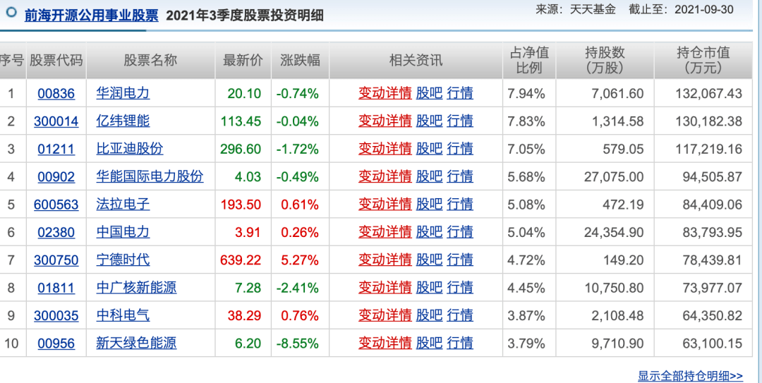另外,崔宸龍管理的兩只產品,持倉個股也有明顯的差異,前海開源公用事業傾向於電力能源,而前海開源新經濟則更加偏重於新能源。