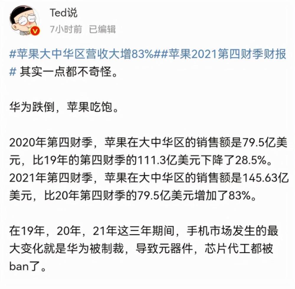 雖然華為Q3的業績並沒有想像中的那麼好,但其實也沒有想像中的那麼差。要知道從2年前限制華為後,華為還能開拓多條戰線,這足以見證華為公司的實力。但有必要提及的是,被限制之後,蘋果智慧型手機找不到對手,短短2年多的時間,蘋果公司的市值差不多又翻了3倍。