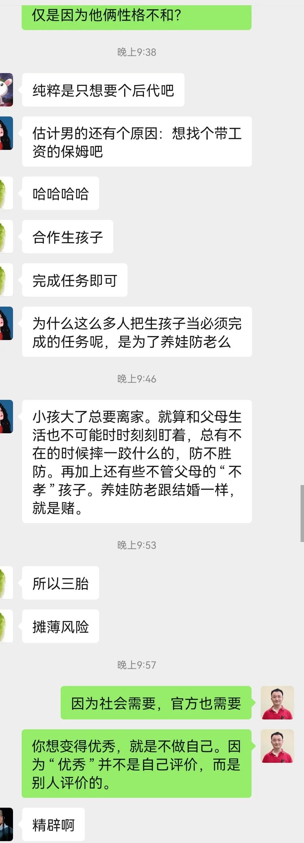 這說明一開始就是設計好了的,男孩本身需要這個婚姻來滿足個人的價值訴求,有了孩子當然更好交差。