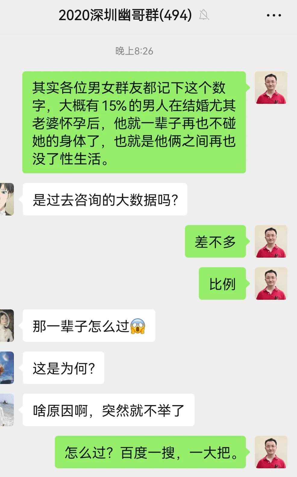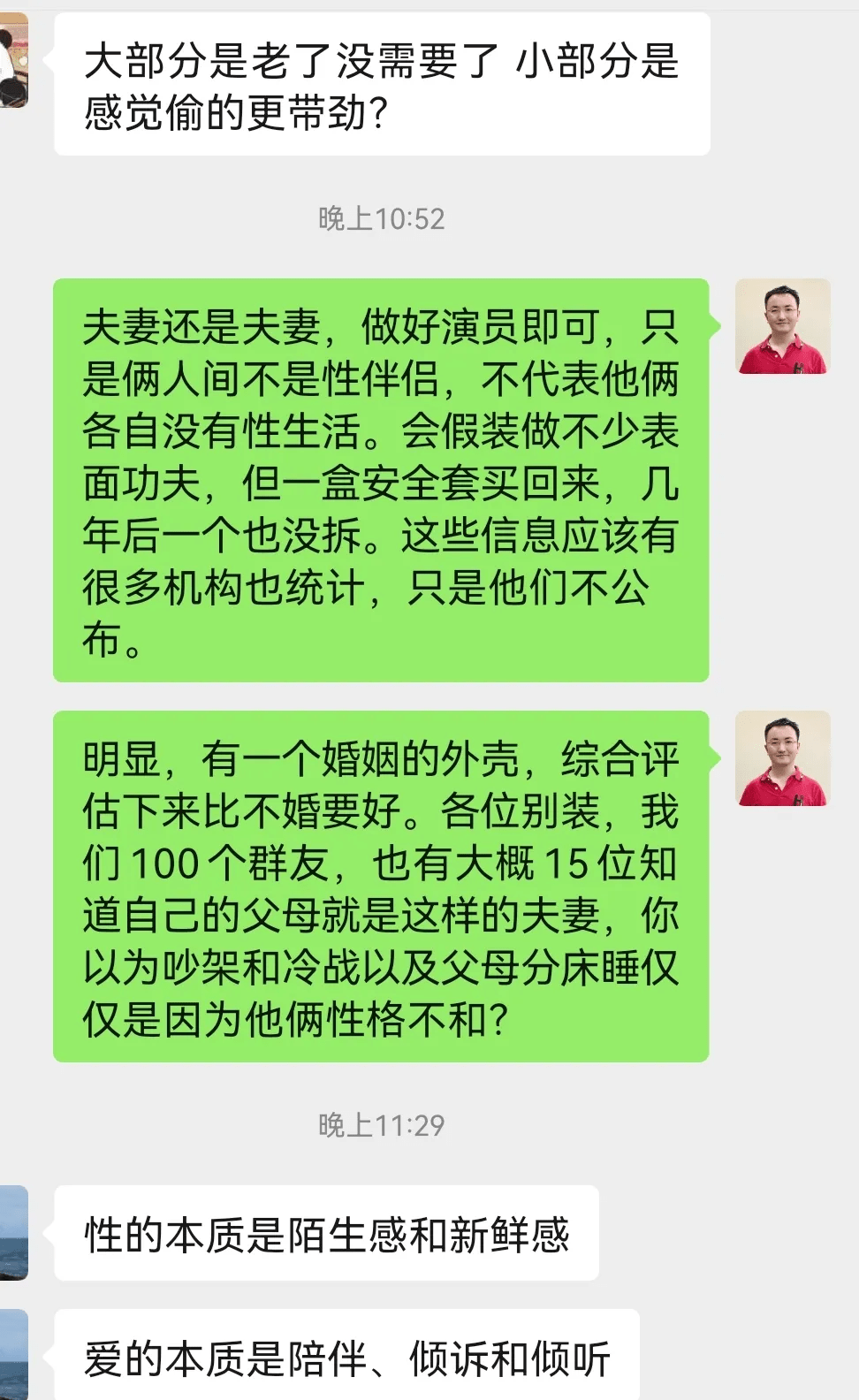 這部分暫時只能用統計規律來說明或者闡述,更深入的原因還沒發現。我們不少女群友結婚尤其生娃後,老公就不再碰她了,也就是老公寧可去嫖娼或者買春,都不願意跟老婆來做。