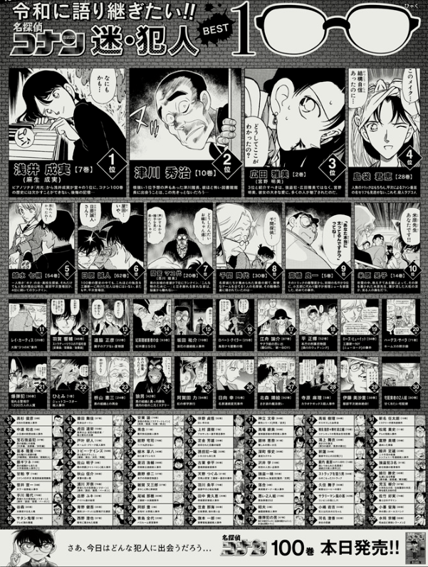 話說,《名偵探柯南》在前段時間終於連載到100卷了,為了紀念這充滿意義的數字,官方請讀者對過去作品中登場的犯人進行了人氣投票,列出了人氣前100的犯人——