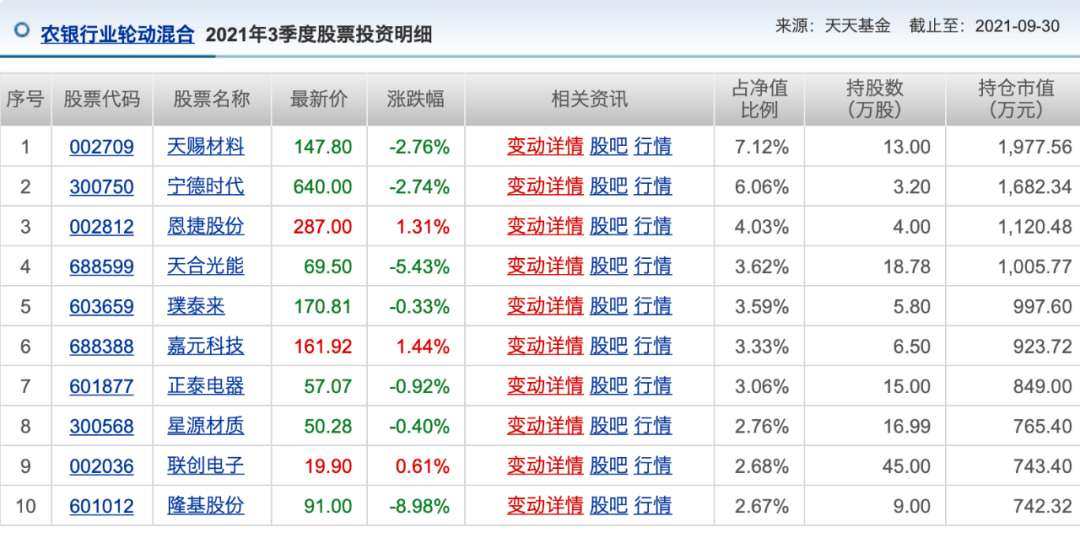 資料顯示,邢軍亮證券從業6年,今年7月才開始擔任基金經理,任職只有100多天。他和另一位基金經理韓林共同管理了一隻基金——農銀行業輪動混合,規模2.78億。7月以來,邢軍亮的任職回報還是不錯,達到了20.52%,而該基金的重倉股也集中在新能源板塊。