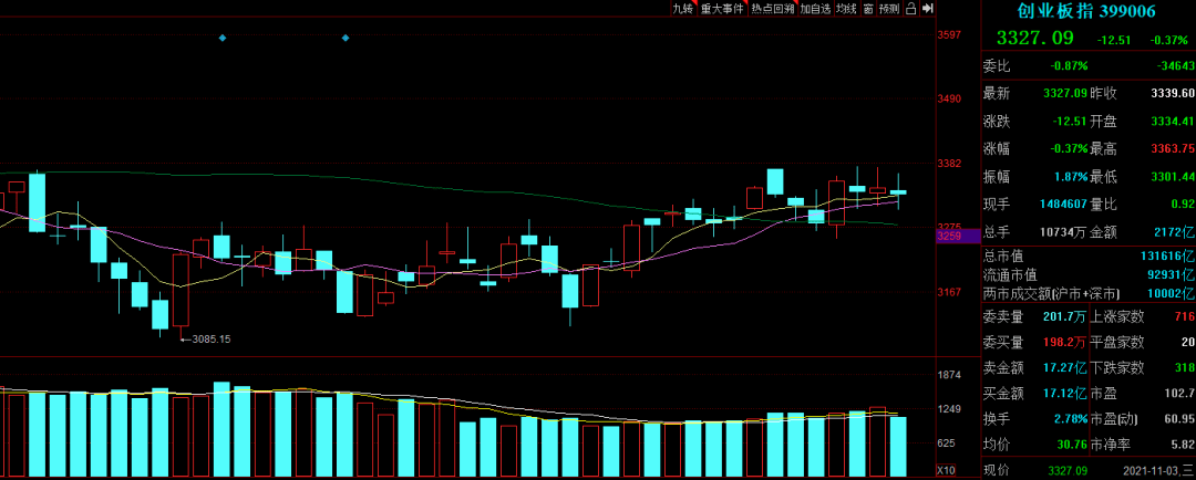 創業板表現一般,主要是新能源和光伏大幅下跌,但豬肉和疫情板塊表現不錯,整體跌幅有限。