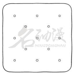 第二步:新建一個圖層,接著使用橢圓工具繪制餅幹上的孔,位置像是九宮格,這是第一組的孔。如圖所示: