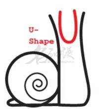 第六步:再在短曲線和「S」曲線直接,繪制一個「U」。如圖所示:
