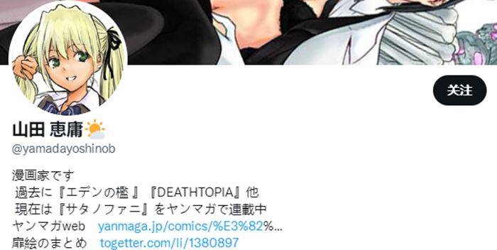 最近在《周刊Young Magazine》上進行連載的漫畫家山田惠庸也對此發推感嘆。山田惠庸創作的漫畫《邪靈附體》講述了一群犯下無意識殺人罪行的女生,被送到孤島上的女子監獄後發生的故事。不知是因為劇情需要還是作者本人的癖好,這部漫畫中摻雜了不少獵奇、福利向的限制級場景。