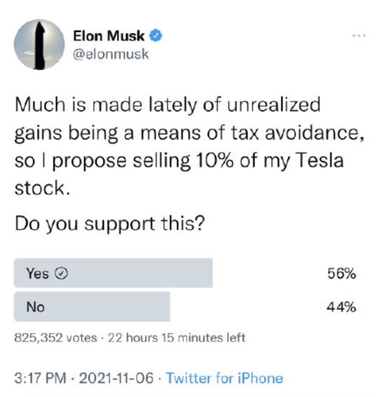 馬斯克發起投票,詢問為了納稅是否應該賣掉手上10%的股票,承諾他將會按照投票結果行動。