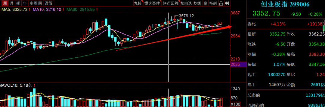 技術面上,創業板周圖小幅攀升,相對平穩,但整體形勢還是比較弱。
