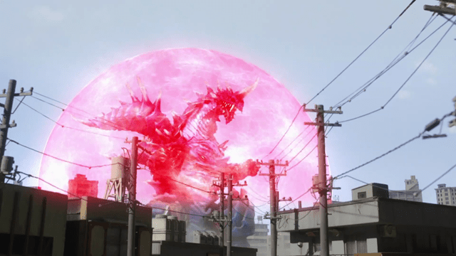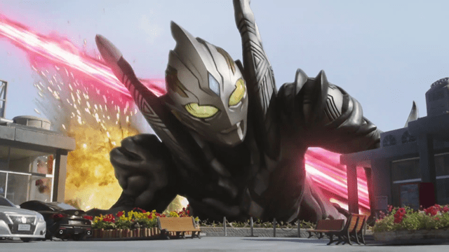 黑扳機、特利迦和精英勝利隊先後發動攻擊,滅亡大蛇自然要禮尚往來。全身尖角發光,滅亡大蛇頭頂區域出現暗紅色的漩渦,漩渦中釋放暗紅色的炮擊,沐浴在炮擊中的特利迦和黑扳機都被打成光粒子消散。