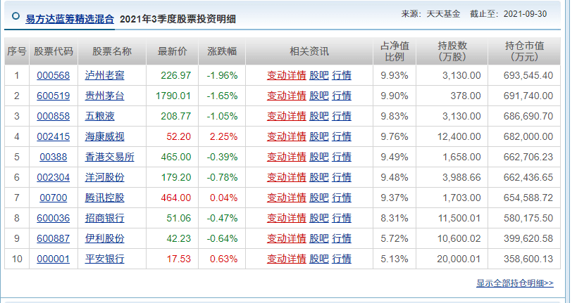 而另一方面,招行和平銀也進入易方達藍籌的十大持倉股:
