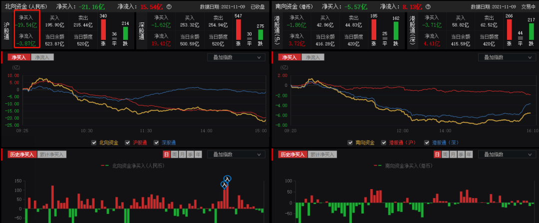 北向資金方面,港仔延續小幅賣出21億,滬市賣出19億多,這也是今天大盤股表現低迷的原因。