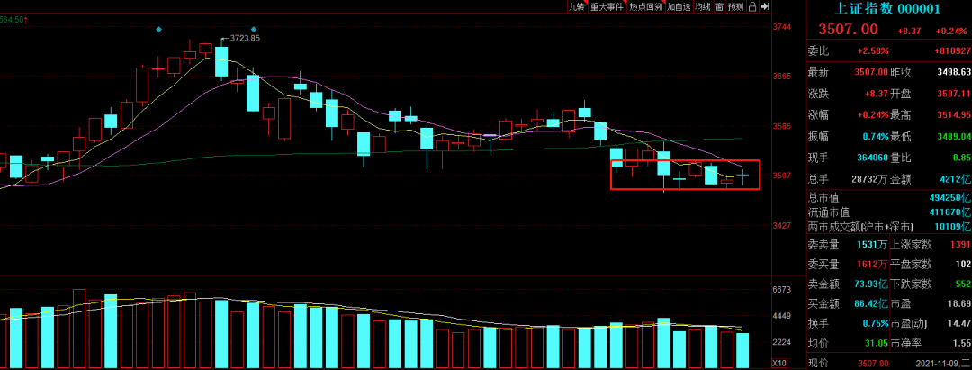 技術形態上,滬指短期依然是在3500點爭奪戰,目前還是在震盪盤整,尋求止跌企穩信號。