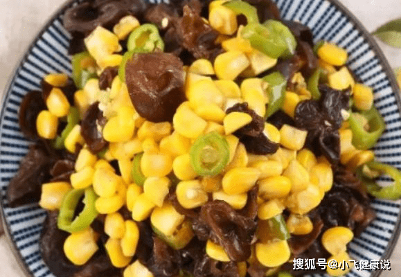 玉米炒木耳,功效:黑木耳當中含有豐富的膳食纖維,可以吸收腸道水分,促進腸內廢物的排出,減少毒素對於身體所造成的傷害,所以,經常吃黑木耳可以排毒減肥的作用。玉米也含有豐富的纖維素,不但可以刺激胃腸蠕動,防止便秘,還可以促進膽固醇的代謝,木耳和玉米搭配,減肥效果更加突出,朋友們可以多吃