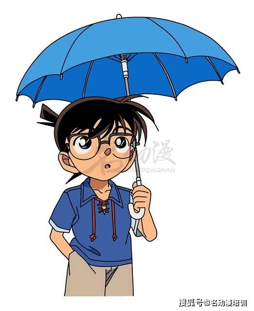 第二步:豐富細節。新建一個圖層,在新的圖層上面給初始草稿增加細節。比如畫出柯南的劉海,雨傘的細節以及柯南的衣領鼻子等。